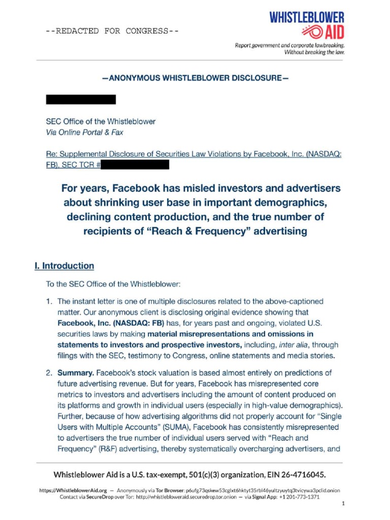 Sec Fb Wb Reach Complaint Summary Pdf Facebook U S Securities And Exchange Commission